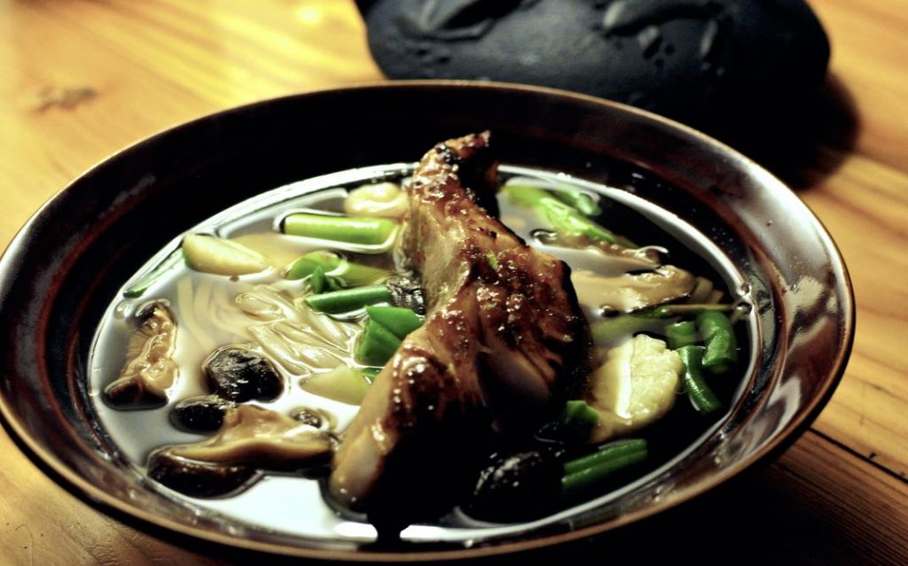 A perfect warming winter soup for after the ski hill or when under the weather. (Note: the display picture has optional soy-ginger glazed black...