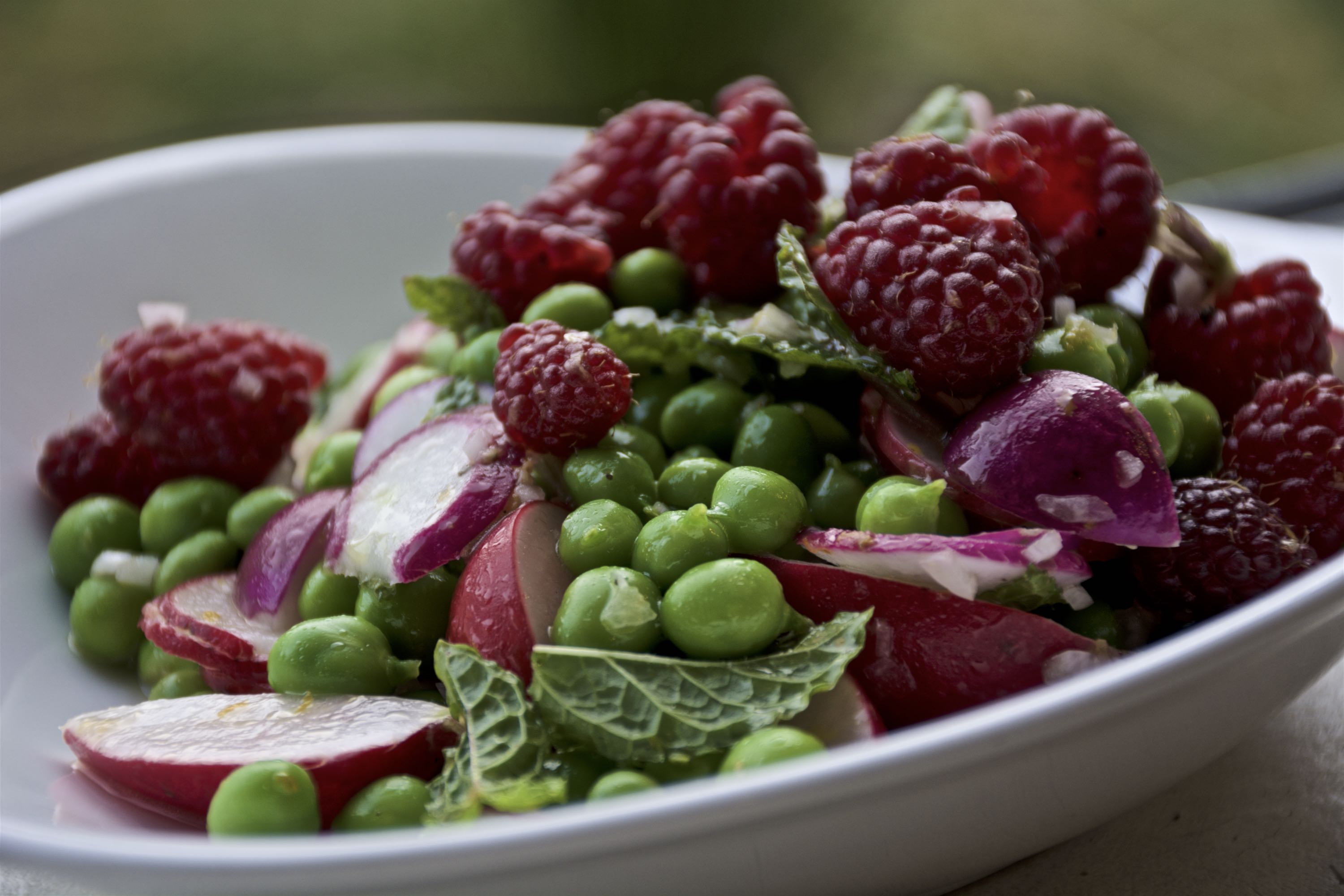 English Pea and Raspberry Salad with Citrus Dressing