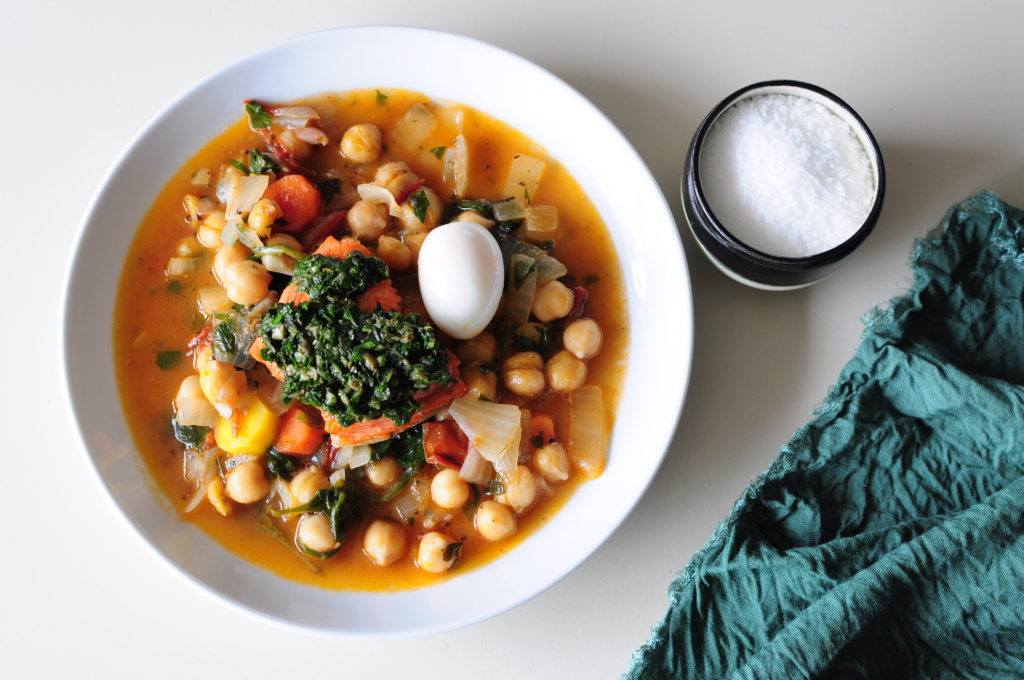 This is a lovely, fresh, healthy, sauce that can pump up a wide variety of foods: eggs, beans, fish, and soups.